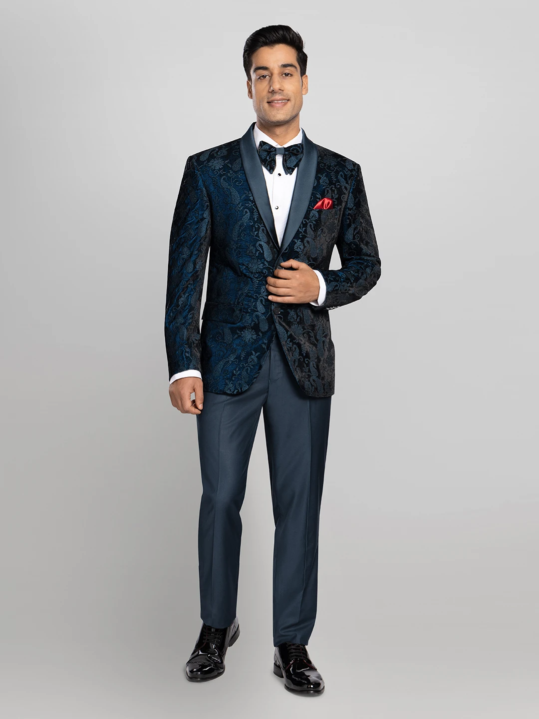 Blue Colored Textured Five Piece Tuxedo Men's Suit